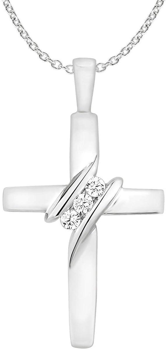 10k Diamond Three-Stone Cross Pendant Necklace Religious Jewelry (0.05cttw, I-J/I2-I3) 18"
